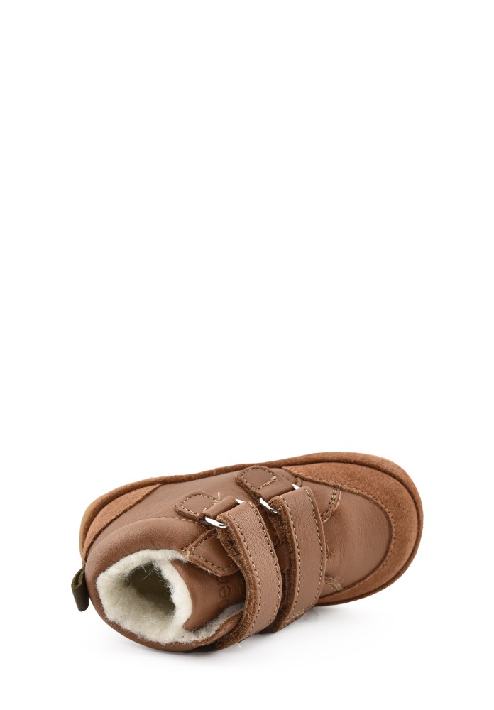 Aubépine logo Wollfutter erste Schritte Cognac Kaki