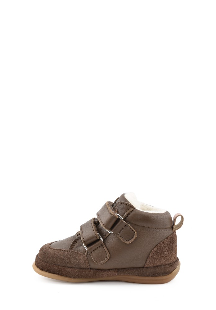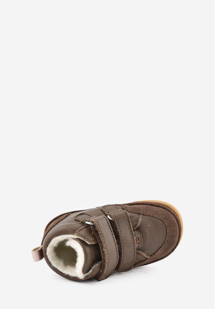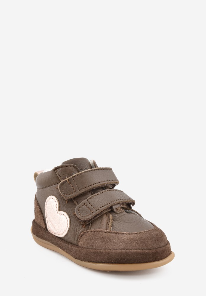 CONCEPTION: chaussures premiers pas Benjie avec un léger contrefort au talon pour le confort, sans figer la cheville afin que celle-ci puisse se muscler de manière optimale. Elles sont très souples et permettent à l'enfant de trouver facilement ses appuis.